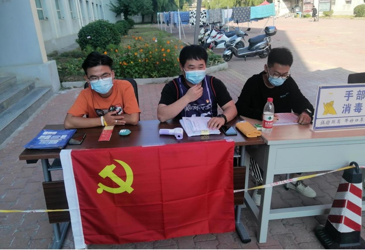 8月27日开始,学生党员迅速行动,主动佩戴党徽、亮明身份,及时到所在公寓报到。组织返校学生有序排队测量体温,配合学校发放“通行卡”,积极开展防疫执勤、信息登记、查验返校材料、行李消杀等工作,为学校做好疫情防控贡献力量。